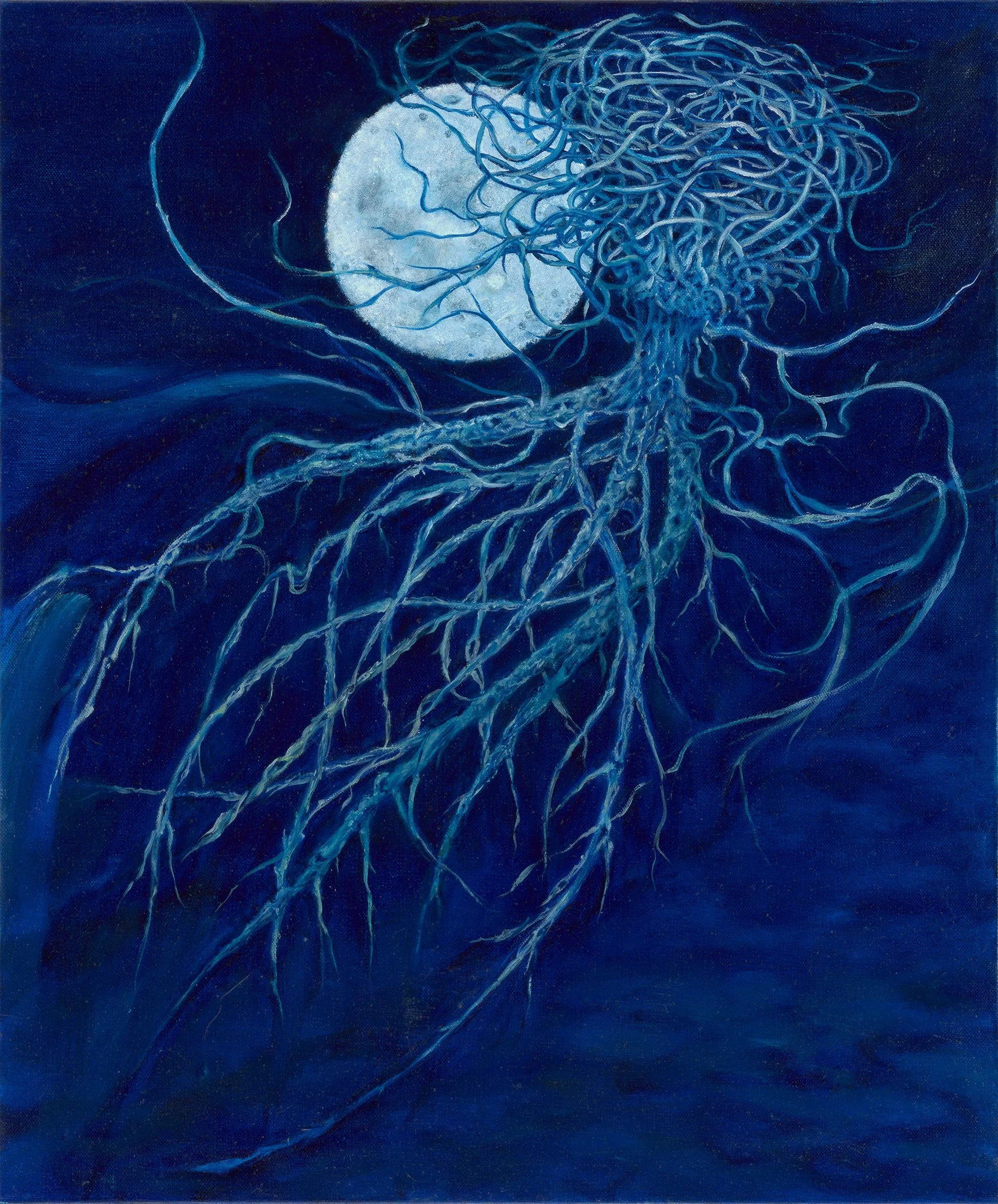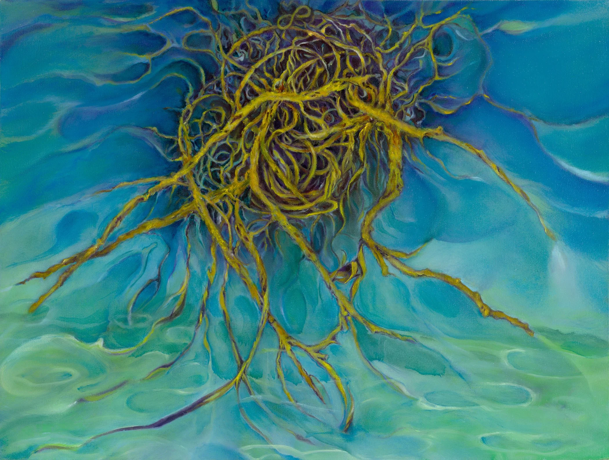 In my painting process, I employ thin layers of glazes to create transparency and depth, allowing underlying colors to shine through. I often draw inspiration from my own photographs. The exploration of metaphorical imagery is both daunting and exhilarating, and I aim to tell a beautiful, transcendent, yet believable story through my work.